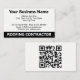 Carte de visite de réparation de toitures, de toitures ou de toits avec un code QR à l'arrière.