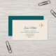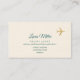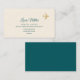 Une carte d'affaires élégante pour un agent de voyage... avec nom de script et petit avion en faux or (couleur ocher), imprimé sur l'arrière - plan crème à l'avant... couleur turquoise foncée à l'arrière.