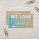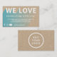 Customisez cette carte de marketing d'entreprise branchée. Il est parfait pour une entreprise de commerce électronique comme une boutique, un magasin Etsy ou toute autre petite entreprise. Il comporte l'expression "NOUS AIMONS" et dispose d'un texte personnalisable pour expliquer plus de détails. L'envers peut être utilisé pour afficher le logo personnalisé de votre entreprise. Ce produit express l'intérêt de se connecter avec les clients en encourageant les acheteurs à vous envoyer des messages et à suivre votre entreprise sur les médias sociaux avec l'information fournie à côté des icônes de médias sociaux Facebook, Instagram et YouTube.