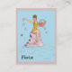 Dessin rétro d'une dame assise sur un rocher jetant des fleurs dans l'eau à partir d'un panier.