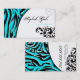 Favorisez votre hanche et refroidissez les affaires de planificateur de partie avec cette copie texturisée rugueuse moderne et élégante bleue, noire, et blanche d'aqua de zèbre, carte de visite audacieux floral, et de diamants. Ce carte de visite comporte un arrière - plan rugueux et texturisé d'impression de zèbre (animal) avec un échantillon incurvé orné avec les diamants magnifiques et des remous floraux audacieux et impertinents. Ce carte de visite audacieux, moderne, et élégant est également un grand match pour les couturiers, l'industrie musicale, les chanteurs, les musiciens, de vrais agents immobiliers, concepteurs de sac à main, magasins d'habillement, l'industrie du spectacle, des danseurs, des actrices, des maquilleurs, des magasins de bijoux, des bijoutiers, des ventes de diamant, la vente au détail, des cosmetologists, des modèles, des agences, des studios de danse, des planificateurs de partie, des organisateurs, et plus. Conceptions de ©2011 Pam.