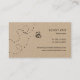 carte de visite rustique sur papier kraft réel avec une image faite à la main d'une ruche, sur le dos il y a une jolie abeille qui vole en tourbillons. carte de visite adapté à la petite entreprise de miel bio maison.