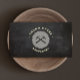 Logo simple de style emblème rustique avec scie ronde et logo marteau croisé. Idéal pour un ouvrier et restaurateur du bois, professionnel de la restauration, menuisier, menuiserie, ouvrier du bois, menuisier et vente de contreplaqué.