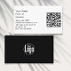 Scannable Black and White Company Carte de visite avec logo incarne le réseautage professionnel. Ajoutez votre logo, votre texte unique et les détails du code QR pour personnaliser ce modèle pour votre entreprise. Pour les ajustements de couleurs ou d'autres modifications de conception, utilisez le lien "Modifier à l'aide d'outils de conception". Pour en savoir plus sur l'image de marque, visitez le site www.KBMD3signs.com. Pour obtenir de l'aide sur la personnalisation ou des renseignements sur un design sur mesure, contactez-nous à l'adresse info@KBMD3signs.com.