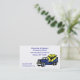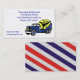 Ce carte de visite est décoré d'un camion en ciment bleu et jaune dans le coin inférieur gauche.