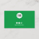 Carte de visite d'agent immobilier vert avec icônes pour coordonnées et profils de médias sociaux. Ajoutez facilement votre logo et votre photo pour un look personnalisé.