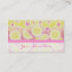Fruits, vertiges, sucrés et aigres... des tranches de citron, des bulles et des étoiles flottent dans la limonade rose. Carte de visite avec un design personnalisable rose, jaune, orange et blanc pour vous permettre de personnaliser avec vos propres textes, images et idées. Image créée à partir d'un dessin original de couleur crayon et encre par Jess Perry.