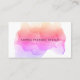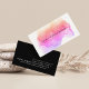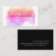 Les cartes de visite d'aquarelle chic arborent votre nom ou nom de société sur une illustration de l'encre blooming, dans les teintes du coucher du soleil de corail rose, violet et doré. Ajoutez vos coordonnées complètes à l'arrière en blanc contrasté sur noir.