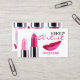 Peintre maquillage design carte de visite avec rouge à lèvres rose brillant et lèvres féminines roses rubis sur arrière - plan blanc. Cette carte de profil élégante est parfaite pour les esthéticiennes, les cosmétologues, les salons de beauté pour cheveux et maquillage et autres professions similaires. Si vous avez besoin d'aide pour ce design, n'hésitez pas à me contacter.