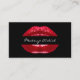 Modèle de carte de visite d'artiste de maquillage audacieux et puissant conçu avec un graphique et un emblème de lèvres rouges frappants qui affiche et présente votre profession. Conçu pour un maquilleur, un cosmétologue ou un représentant en cosmétique.