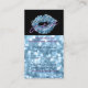Carte de visite peintre de maquillage avec baiser de rouge à lèvres bleu glamour avec rayures zèbre glamour et brillant blanc sur élégante arrière - plan bokeh de parties scintillant noir et bleu clair. Cette carte de profil design est parfaite pour les esthéticiennes, les cosmétologues, les coiffeurs et les propriétaires de salon de beauté maquillage et d'autres dans l'industrie de la beauté. Si vous avez besoin d'aide pour ce design, n'hésitez pas à me contacter.