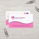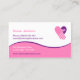 Un carte de visite de massage avec un logo d'une main créant une forme de coeur dans le rose et le pourpre. Approprié à un thérapeute de massage, thérapies holistiques, reiki, réflexothérapie, massage en pierre chaud, massage thaïlandais de pied, massage facial d'Ayurvedic, oreille de Hopi mirant, et à d'autres traitements complémentaires et entreprises de soins de santé.