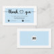 Merci à vos clients avec style avec ce carte de visite moderne de remerciement avec une élégante police de script "merci", informations personnalisées et logo et une jolie illustration cardiaque sur un arrière - plan bleu clair.