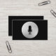 Carte de visite élégant d'industrie musicale avec le cadre gris d'aluminium de cercle de Faux et l'image noire de microphone.