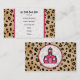 Un carte de visite avec un arrière - plan empreinte de léopard à garniture rose. Texte noir sur blanc pur. Personnalisez avec vos informations. Les fonctions latérales en face correspondent au arrière - plan empreinte de léopard. Le logo de The Pink Schoolhouse à l'intérieur cercle en forme de cadre rose.
