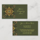 Un modèle de carte de visite avec un motif de kaléidoscope des fleurs jaunes et rouges de la noisette de sorcière, sur un arrière - plan vert-foncé, peut-être pour un herboriste ou un praticien d'homéopathie. Avec un modèle pour votre nom sur l'avant et d'autres détails sur le dos.
