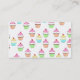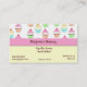 Ce joli carte de visite est parfait pour n'importe quel boulanger ou boulangerie. Il comporte un dessus blanc et un bas jaune. Les petits petits gâteaux minuscules remplissent dessus blanc et votre texte va sur le fond jaune. Courses roses d'une rayure par le centre. Le dos est couvert en petits gâteaux colorés minuscules !