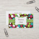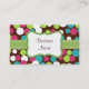 Des pois rose vif, citron vert, blanc et turquoise sur un arrière - plan marron chocolat décorent ce carte de visite de style rétro. Utilisez ce carte de visite élégant pour une boulangerie, boutique, boutique, restaurant, traiteur, salon, coiffeur, coiffeur, salon de coiffure, altérations, tuteur, enseignant, designer, décorateur, salon de beauté, garde d'enfants, maquilleur, cabinet dentaire, etc...Customisez l'information pour répondre à vos besoins. Les motifs sont issus de l'art original.