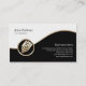 Ce carte de visite préparateur de déclarations comporte des segments noirs et blancs séparés par une bande d'or ondulée. Une élégante icône en or d'un stylo et d'un panneau en dollars se trouve sur le côté inférieur gauche du design, qui est généralement adapté aux entreprises ou professions liées à l'administration, aux affaires, à la gestion, aux professionnels, à la comptabilité, aux finances, aux thèmes généraux.