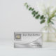 Elégant Bureau de Droit Platine brossé ou Procureur à carte de visite de droit - en haut à gauche a un carré en verre avec des échelles de justice