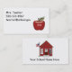 Ce carte de visite a une pomme avec un endroit pour la catégorie sur l'avant et une maison d'école avec l'endroit pour le nom de l'école sur le dos.