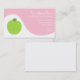 Un carte de visite simple et traditionnel pour des professeurs comportant un modèle de couleurs de rose, vert et blanc. Illustration de pomme verte à la gauche. Personnalisez avec votre nom et information dans le blanc au-dessus de la section rose en haut.