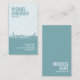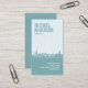 Modèle personnalisable de carte de visite avec le thème audacieux de Chicago avec la silhouette d'horizon de ville sur le bleu turquoise.
