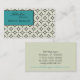Design moderne et branché Retro Radiance carte de visite design en turquoise. Ce design pointu serait parfait pour une variété d'entreprises, y compris le design d'intérieur! Pour que ce carte de visite soit le vôtre, il suffit d'ajouter vos informations dans les champs fournis. Les polices et les couleurs de texte peuvent être customisées selon vos préférences.