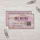 Ce carte de visite est muni d'agate de parties scintillant rose et or avec vos détails en typographie sans-serif, et dispose d'un système de récompense classique sur le dos pour les clients de retourner et recevoir quelque chose, c'est-à-dire remise, article gratuit, etc. Remplissez les détails avec le nom de votre entreprise, le service d'affaires, le numéro de téléphone, le site Web, l'adresse, l'adresse sociale, l'url de code qr, les heures de magasin ou le message, et les informations de récompense au verso.