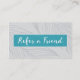 Carte de visite de référence de spa. Carte de visite fait sur commande de référence avec une promotion de référence pour récompenser vos clients pour se référer leurs amis. La carte a une conception et un modèle de couleurs artistiques modernes. Contactez-moi pour des couleurs supplémentaires. Grand pour lancer votre spa et pour augmenter votre liste de client. Entrez dans votre propres promotion, dénis de responsabilité et information de l'entreprise. Perfectionnez pour un salon de spa, de thérapeute de massage, d'acupuncteur, de herboriste ou de clou.