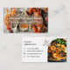 Un carte de visite à deux côtés conçu par un professionnel pour les restaurants de fruits de mer, les chefs ou les services gastronomiques. L'avant est ornée d'images vibrantes de calamars, de crabes et de palourdes. Le dos présente un délicieux plat de fruits de mer spaghettis, parfait pour une cuisine méditerranéenne ou d'inspiration océanique. Personnalisez avec le nom, les coordonnées ou le logo de votre restaurant.