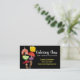 Crevette et chiches-kebabs délicieux et colorés d'apéritif de fromage sur ce carte de visite pour un chef, société de traiteur ou de restauration, cours de cuisine et d'autre nourriture, cuisine, ou affaires culinaires.