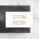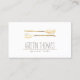 Une cuillère d'aquarelle dorée et une illustration de fourche donnent un aspect artisanal à ce carte de visite de restauration ou de cuisine. Design et illustration © 1201AM CREATIVE