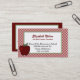 Grand carte de visite de professeurs de regard, avec un arrière - plan checkered rouge foncé et blanc, sur l'avant de la carte. Un secteur blanc des textes, bordé avec une frontière verte semblante de relief, a une pomme rouge juteuse décorer en bas à gauche le faisant le coin. Le dos de la carte est conçu comme carte de rendez-vous. Tout le texte est personnalisable pour indiquer ce que vous voulez. Modèle intéressant de carte de visite pour des professeurs et des tuteurs.