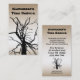 Ce carte de visite fait la publicité d'un service complet d'arbres qui offre l'aménagement paysager, l'entretien des pelouses, l'élagage, l'enlèvement, la fertilisation, la pulvérisation et les consultations sur les maladies et les insectes. Il présente un motif artistique noir abstrait du sommet d'un tulipe en hiver avec des branches nues en silhouette sur un dégradé de métal brun et bronze. Un autre arbre est à l'arrière avec les informations commerciales pertinentes. Tout le texte peut être customisé pour convenir à votre entreprise.