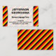 Cette conception de carte de visite a pu être employée par un professionnel tel qu'un tuteur de langue allemande, un instructeur de langue allemande, un traducteur de langue allemande, ou un professeur allemand. Les détails de nom, de profession et de contact peuvent être personnalisés. Elle comporte également les rayures noires, rouges et jaunes, inspirées par les couleurs du drapeau national allemand.