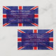 C'est un carte de visite génial avec un drapeau anglais grunge dans l'arrière - plan. Les couleurs sont bleu, blanc et rouge avec une texture grunge amusante. Cette carte est idéale pour un professeur ou un professeur de langue anglaise.