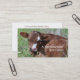 Un modèle de carte de visite de vétérinaire, d'éleveur de bétail ou de propriétaire d'un ranch avec une photo d'un veau rouge-brun et blanc dans le domaine. Le modèle est installé pour une ferme ou le bétail contrôle mais peut juste comme facilement être employé pour une ferme ou un ranch.
