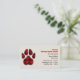 Un carte de visite pour un vererinarian comportant une illustration d'un empreinte de patte rouge et noir de plaid. Personnalisez le texte avec votre information.