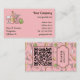 composition de vin rose. Bouteille, verre, tire-bouchon et raisins. Couleur arrière - plan personnalisée. De nombreux champs de texte personnalisables à l'avant. Motif sans faille, icônes d'identification sociale et code QR à l'arrière.