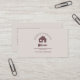 Un carte de visite simple avec une maison et une icône en pinceau dans les tons beige et marron. Il pourrait être utilisé pour un décorateur intérieur (résidentiel ou commercial), mais aussi pour peintre, construction, rénovation, papier peint et installation de plancher, etc. Au fond, vous trouverez des informations complètes décorées d'icônes.