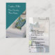 Les beaux et élégants cartes de visite de décorateur ont présenté dans le format vertical sur des affaires de coin arrondi de carte avec l'image d'un divan moderne et les carreaux des deux côtés et votre nom et contenu sur l'avant avec toute votre information de contact sur le détail dégrossissent. Conçu pour un décorateur intérieur, un service de décoration de maison, ou un professionnel à la maison d'échafaudage.