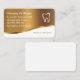 Classy Dentist carte de visite avec look or arrière - plan moderne graphique et symbole de dent ainsi qu'une mise en page simple que vous pouvez customiser en ligne. Permet de distribuer vos cartes de visite dans le style et est conçu pour un bureau de dentiste, Orthodontiste, ou toute entreprise de l'industrie dentaire. Présenté sur un stock carte de visite arrondi en angle pour un design plus durable.
