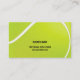 Modèle personnalisable de carte de visite avec le thème de sports pour des entraîneurs ou des joueurs de tennis, comportant une balle de tennis verte sur le noir.