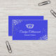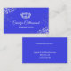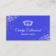 Carte de visite de concours de glam en bleu royal, avec des fleurs de couleur argent et une couronne d'argent et de diamant. Personnalisez tout le texte pour votre entreprise de concours.