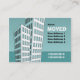 Un modèle de carte mobile avec un dessin animé de blocs d'appartements / blocs d'appartements. Prêt à être customisé avec vos nouveaux détails. Le dessin à l'arrière est le même que celui à l'avant sans le texte.
