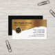 Design carte de visite immobilier classique avec élément design élégant couleur or et symbole maison dans un emblème qui donne à ce carte de visite une touche de classe. Créé pour un agent immobilier, un courtier, un agent ou un service d'inspection à domicile et présenté en angle arrondi stock dur.