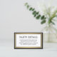 Compliez les invitations noires et dorées et fournissez des informations importantes aux clients avec des cartes de boîtier assorties élégantes. Tout libellé sur ce modèle est simple à customiser pour n'importe quelle occasion. Cette carte comprend les détails de célébration de votre choix tels que les directions, le site Web, les demandes spéciales, l'hébergement, la réception, rsvp, etc. Le design se compose d'une bordure en fausse feuille noire, blanche et or classique, de rayures modernes et d'une typographie art déco vintage et élégante. Veuillez noter que l'or est imprimé en couleur et non en métal.