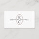 Sur un arrière - plan blanc, deux initiales majuscules en monogramme sont placées verticalement l'une au-dessus de l'autre. Vos prénoms et noms s'intègrent horizontalement entre les deux initiales à travers le milieu du cadre de texte métallique or rose. Ce simple et polyvalent carte de visite de logo monogramme pourrait être utilisé pour les professionnels de la coiffure et du maquillage, comme nous l'avons suggéré dans l'exemple de texte... ou pour des événements de réseautage, ou des entreprises d'assistants virtuels, et plus encore. Le texte des deux côtés de la carte est facile à remplacer par vos propres détails sur le modèle de personnalisation.