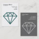 Modèle de carte de visite avec un joyau ou un motif diamant attrayant sur l'avant. Nom de l'entreprise, type d'entreprise et adresse sur l'avant avec nom, titre de l'emploi, téléphonie, adresses web et e-mail sur l'arrière, avec une disposition similaire sur un arrière - plan gris avec un motif en losange dans un gris plus clair. Cette carte peut également être customisée.